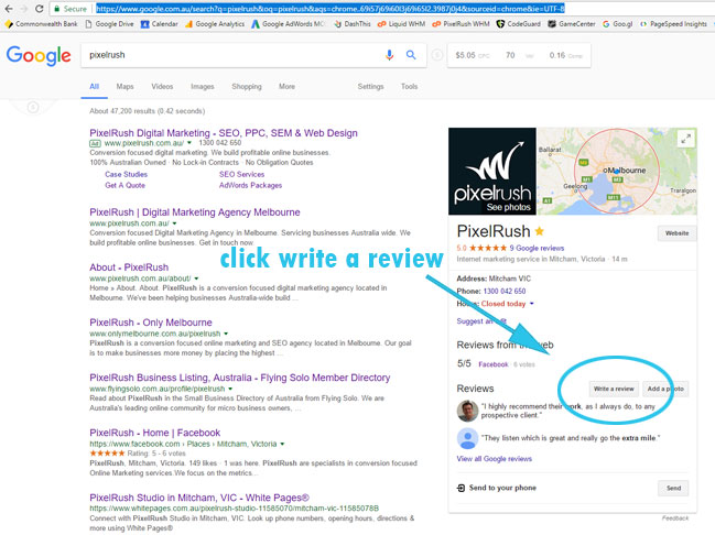 As seen below Google has used Mylocalsalon, True Local and Facebook for review sources too. The section labelled “reviews from the web” will link directly to reviews on sources other than Google make it very easy for consumers to research the quality of your business.